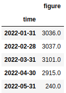 table에서 time을 기준으로 월별 통계를 낸다고 해보자.